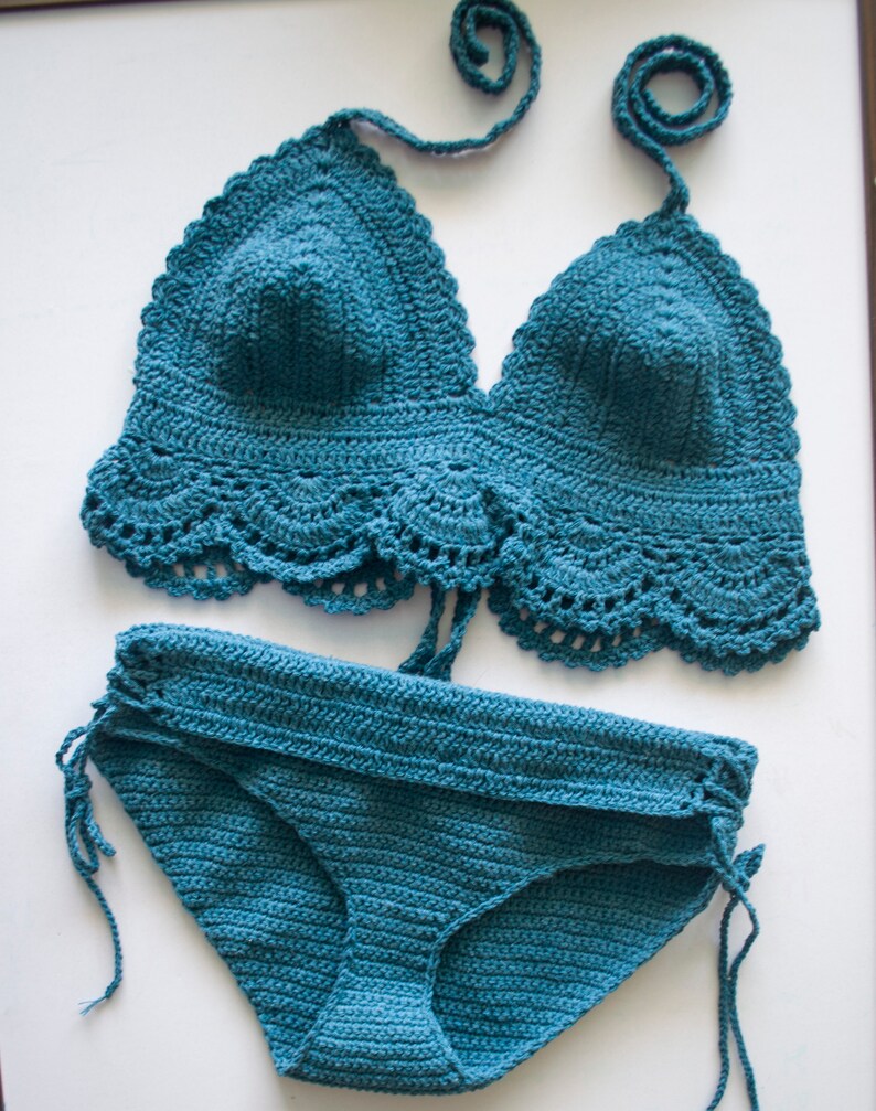 Teal Boho Crochet Bikini Swimwear Piece Swimsuit Set S Etsy is a popular picture for sexy and hot.