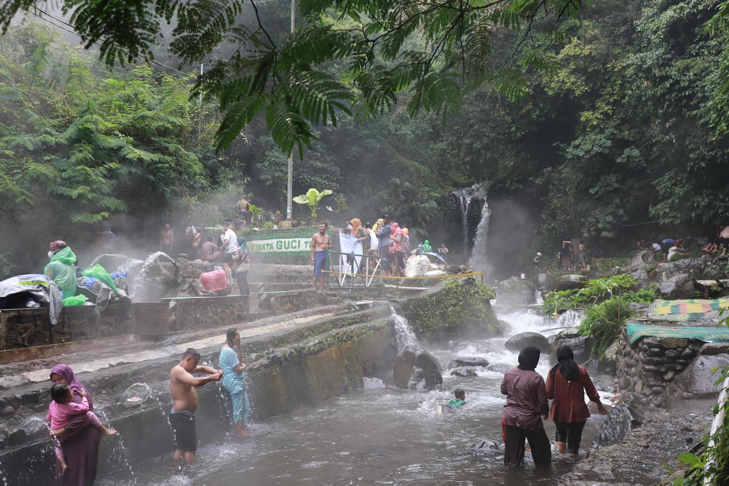 Tag : Tegal January Photo Of Busy Visitors Relaxing And Enjoying The Guci Hot Spring Bath