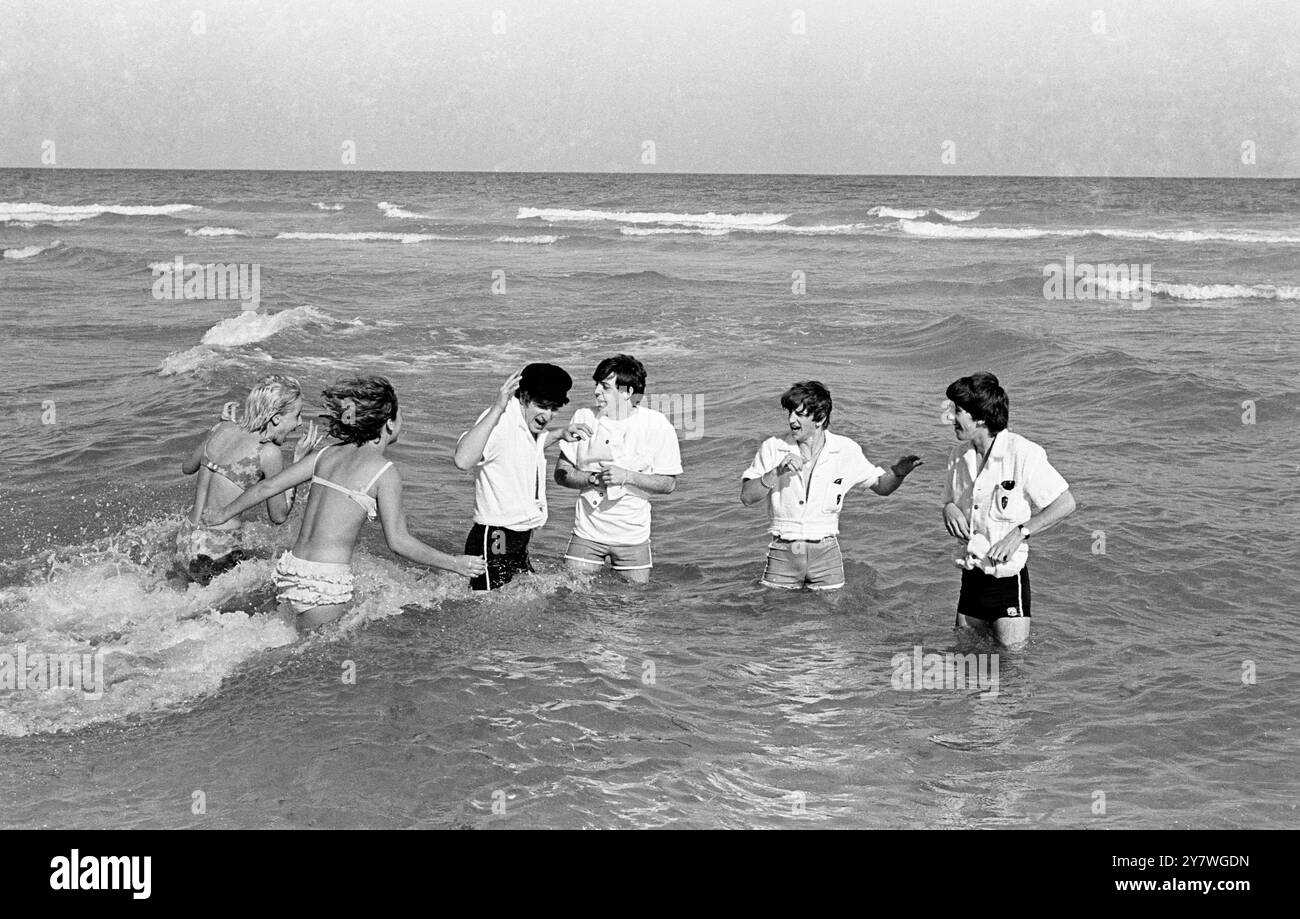 Tag : The Beatles With Two Bikini Clad Fans In The Sea At Miami Florida 18th February 1964 Stock