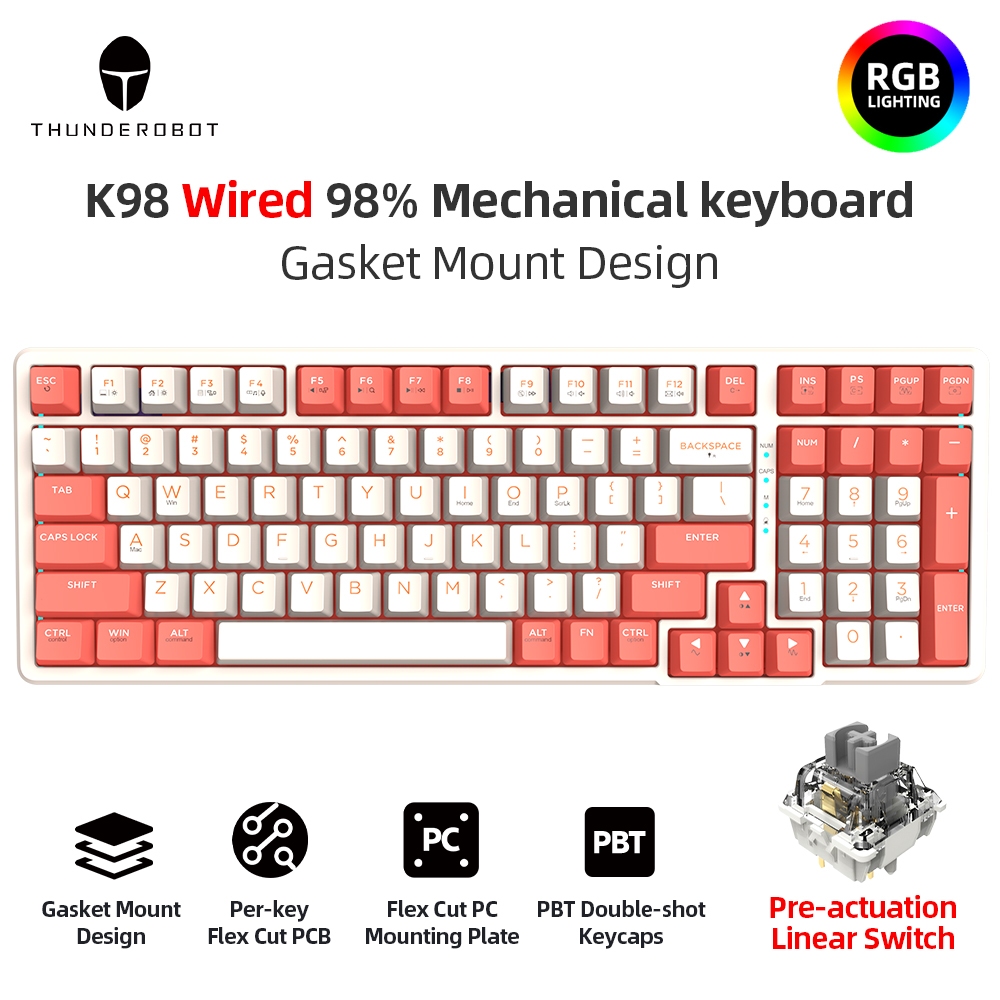 Tag : Thunderobot K98 Series Gasket Mount Mechanical Keyboard Hot Swappable RGB Backlight Wired 2 4G