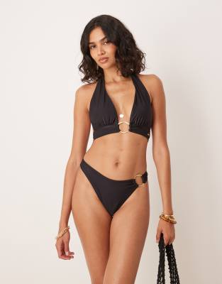 Tag : Top De Bikini Negro Con Cuello Halter Escotado Y Anilla Dorada De TALA ASOS