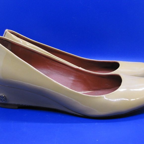 Tory Burch Shoes Tory Burch Annelise Round Toe Low Wedge Nude Patent Leather Red 50240