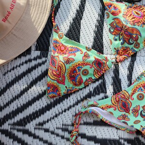 Tag : Triangle Bikini Set Boho Swimsuit Striped Bikini Set Green Triangle Bikini Boho Green Bikini