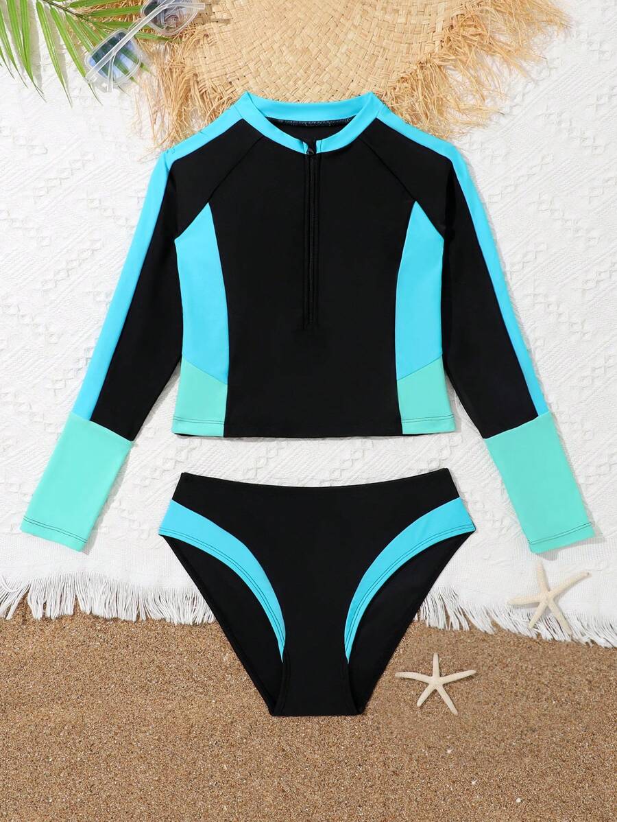 Tag : Tween Girl Colorblock Zipper Front Bikini Swimsuit SHEIN USA