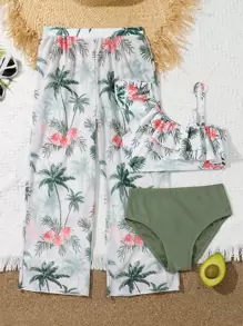 Tag : Tween Girl Tropical Print Ruffle Trim Bikini Set With Cover Up Pants Summer Beach SHEIN USA