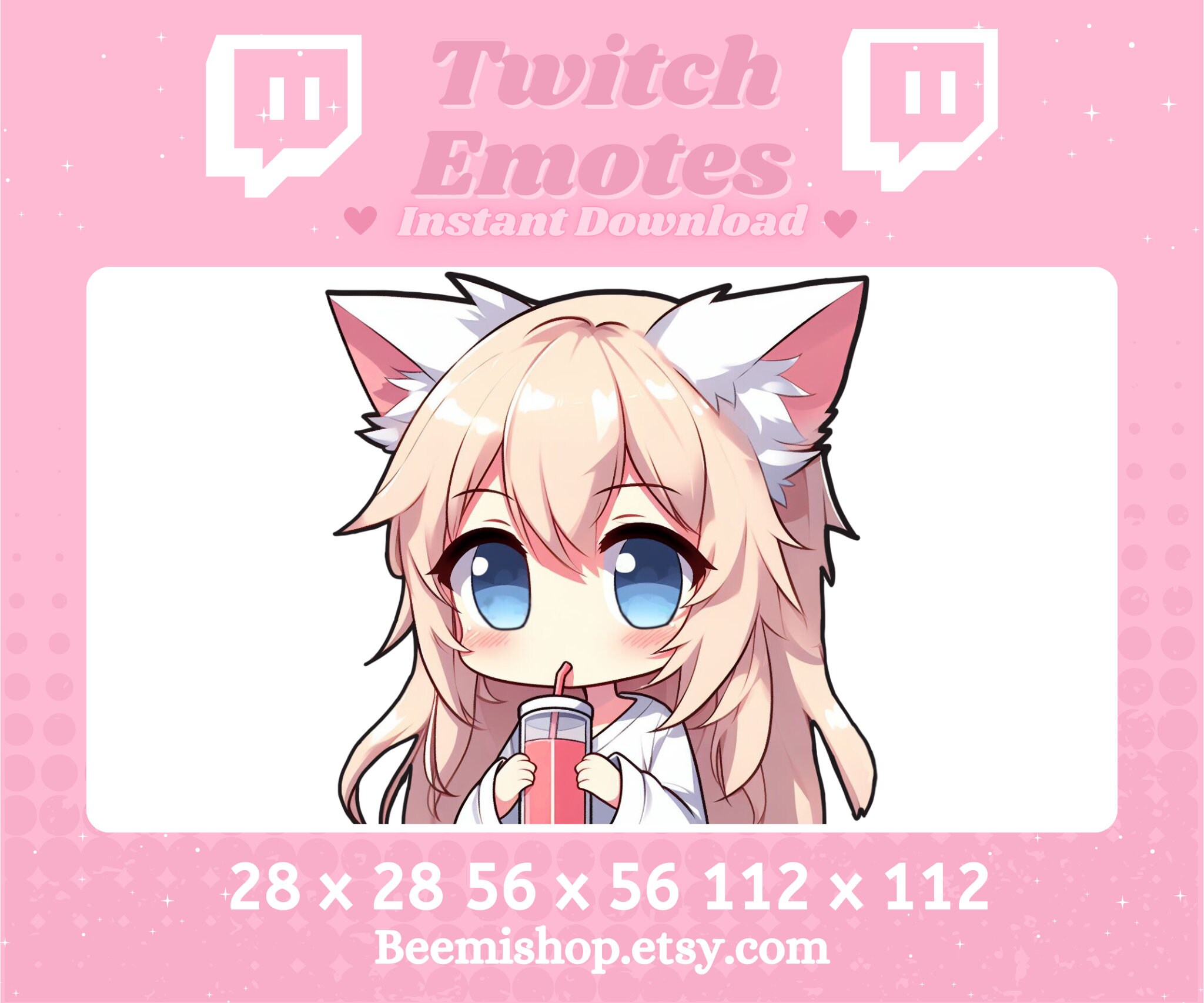 Tag : Twitch Discord Emote Cute Chibi Girl Emotes Catgirl Blonde Blue Eyes Slurping Drinking Youtube