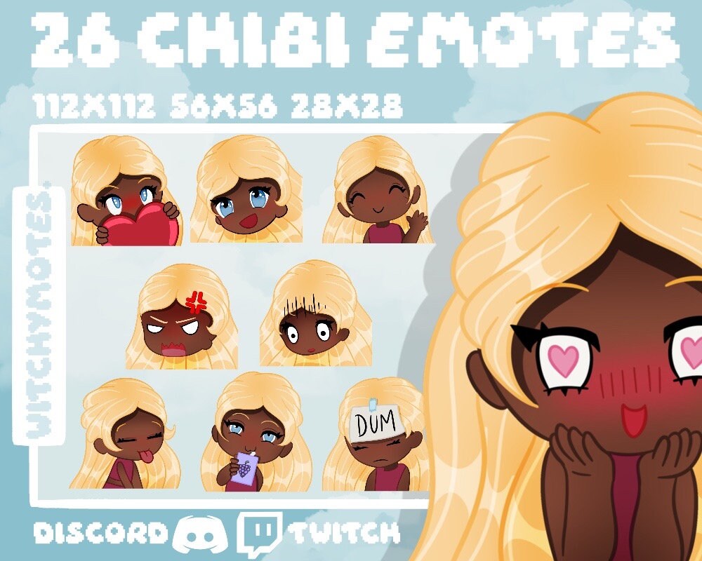Twitch Discord Emotes 26 Pack Cute Blonde Hair Emoji For Streamers Stickers Logo Branding With 119568