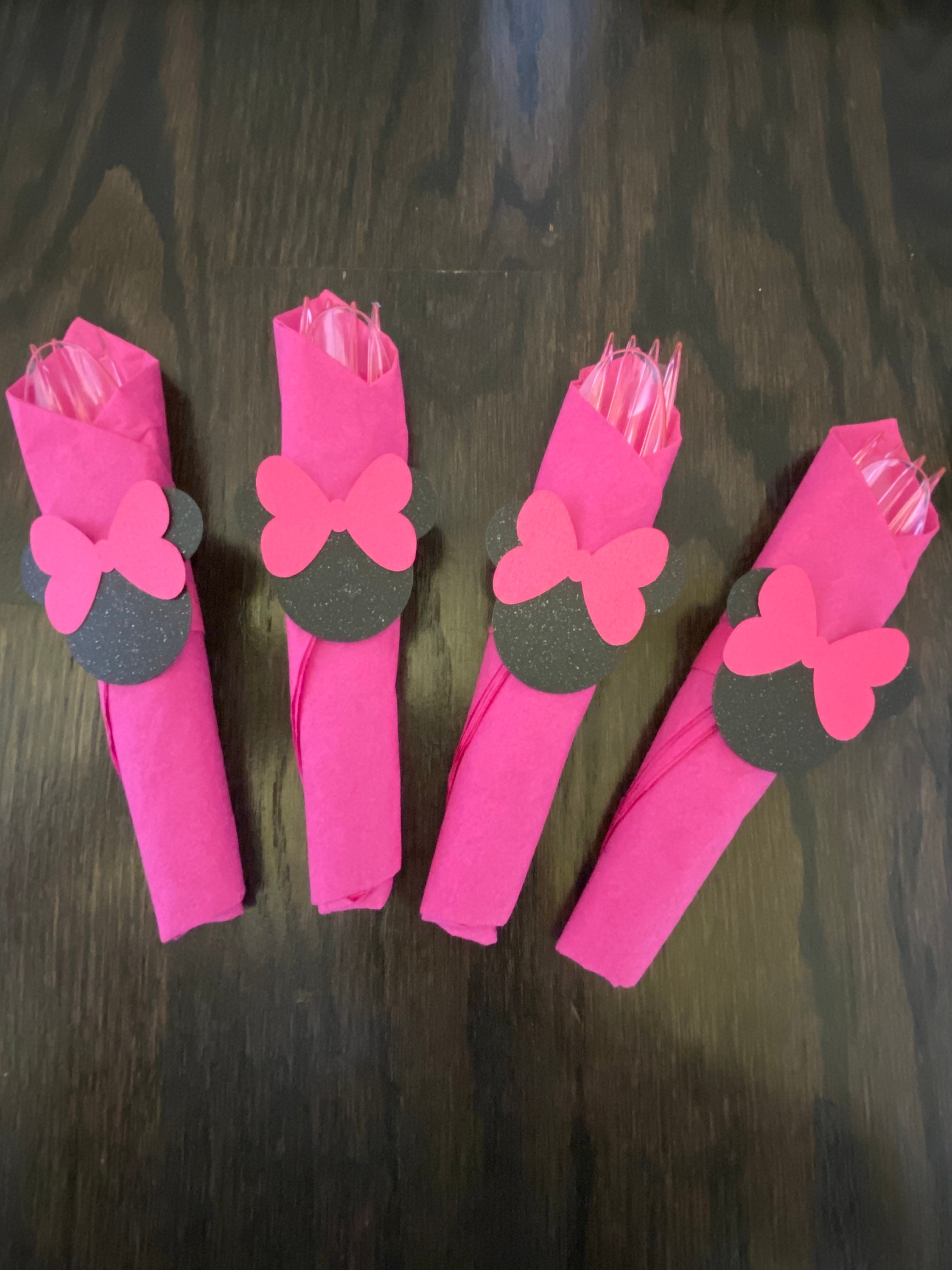 UTENSILS Hot Pink Matching Minnie Mickey Mouse Plates Table Fork Spoon Knife Wrapped In Napkin is a popular picture for sexy and hot.