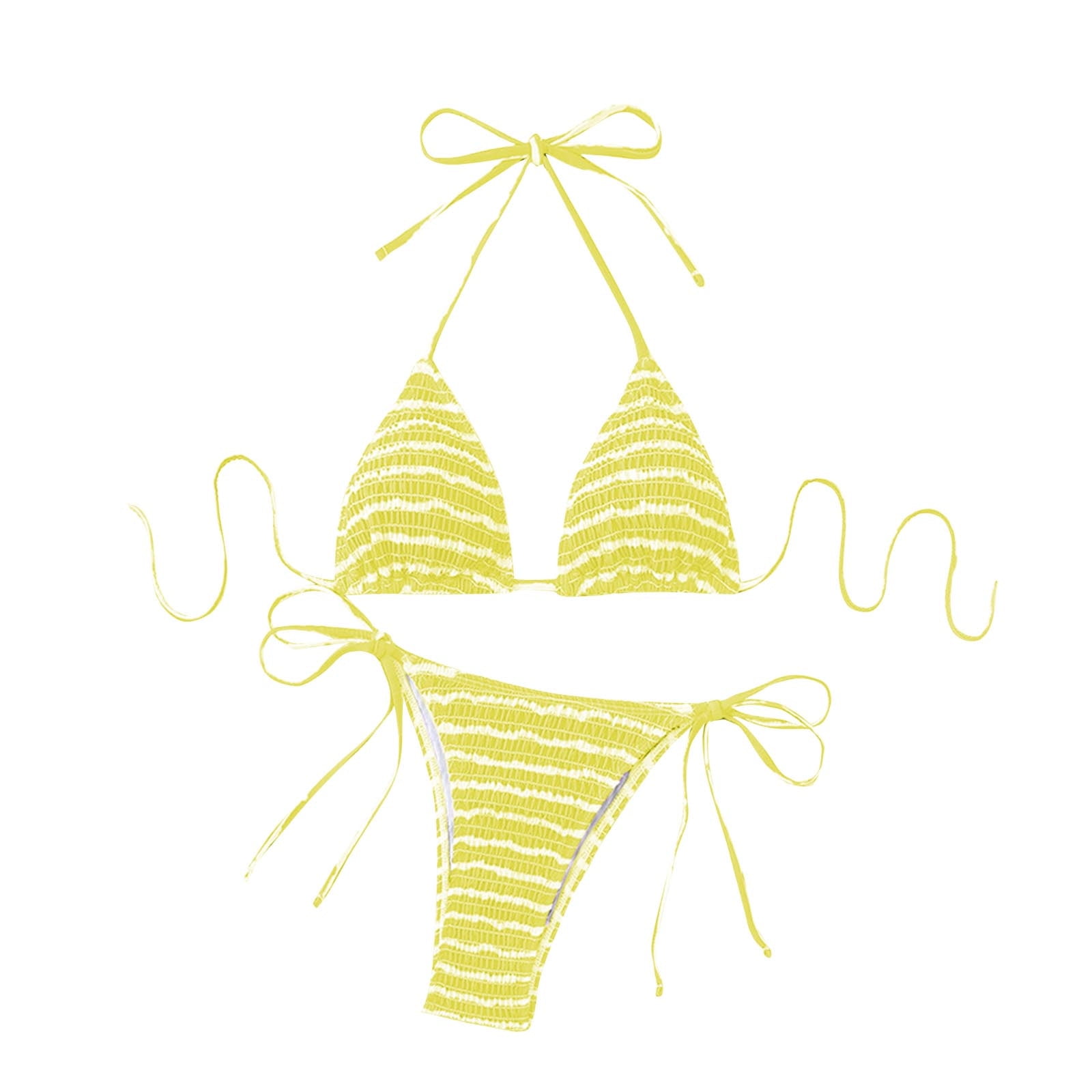 UTSJKR Deals Women S Piece Swimsuit Striped Print Halter Tie Side Triangle Bikini Set Summer is a popular picture for sexy and hot.