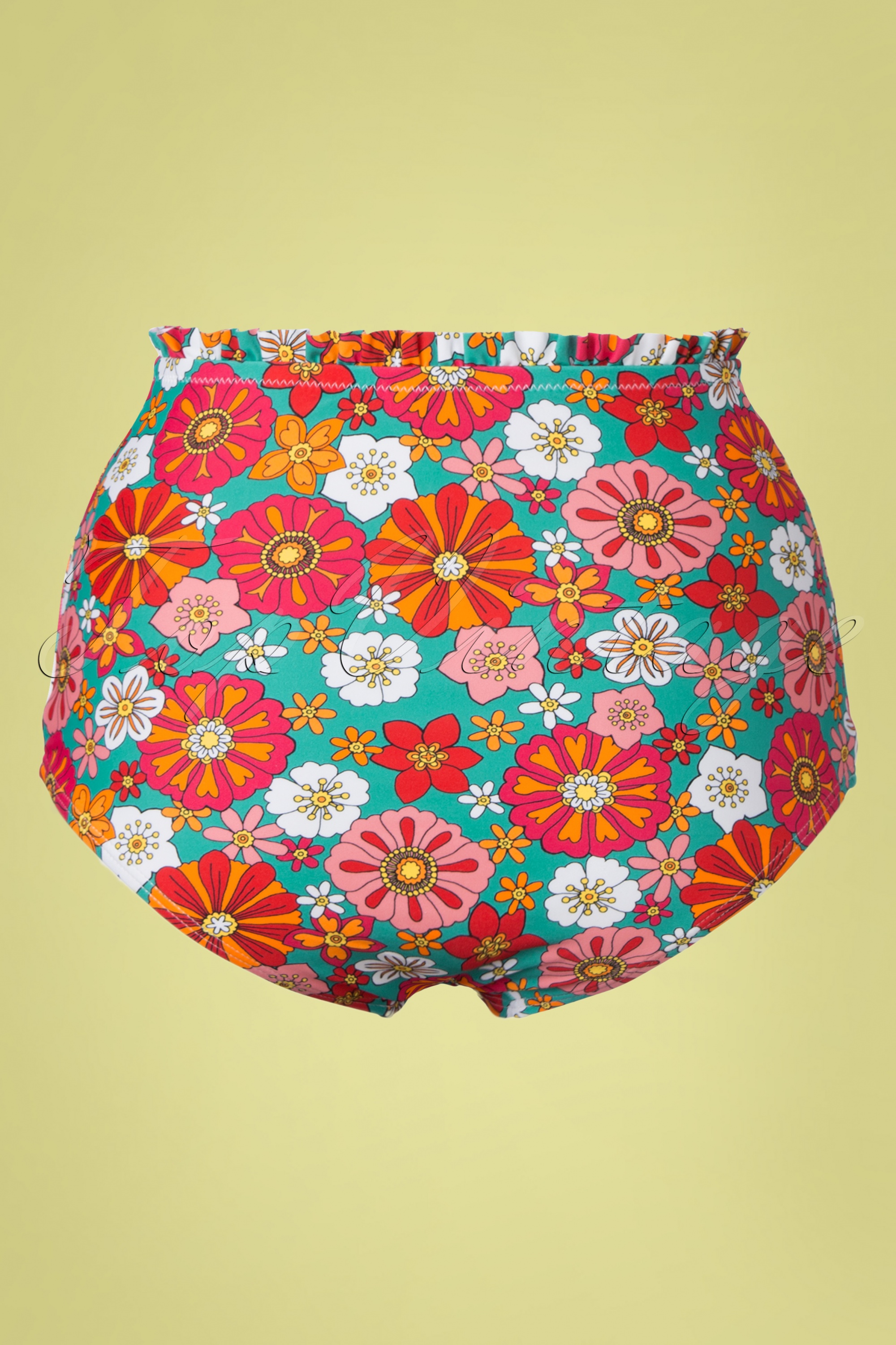 Related pictures for Unique Vintage Cape May Floral High Waist Bikini Bottoms Années en Turquoise et Orange