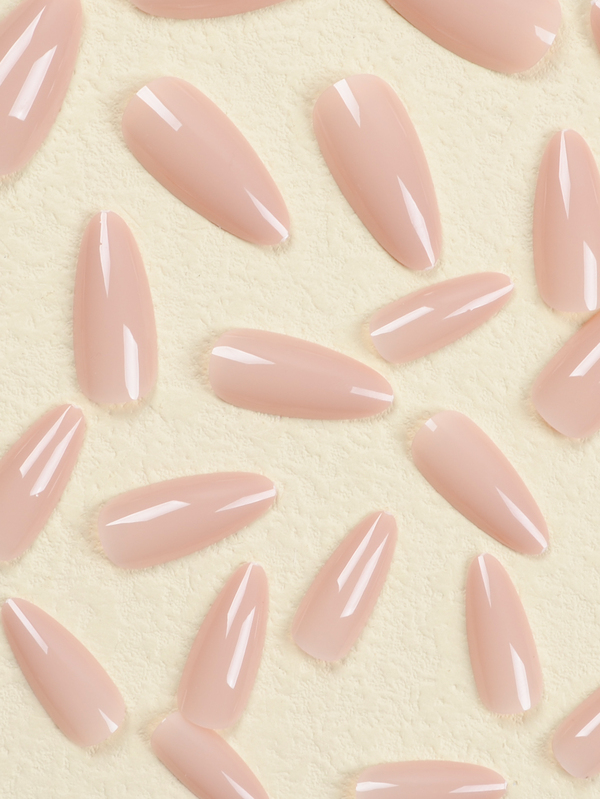 Update Your Style With 24pcs Light Nude Long Almond Solid Daily Wear Full Cover Fake Nail Kit 157170