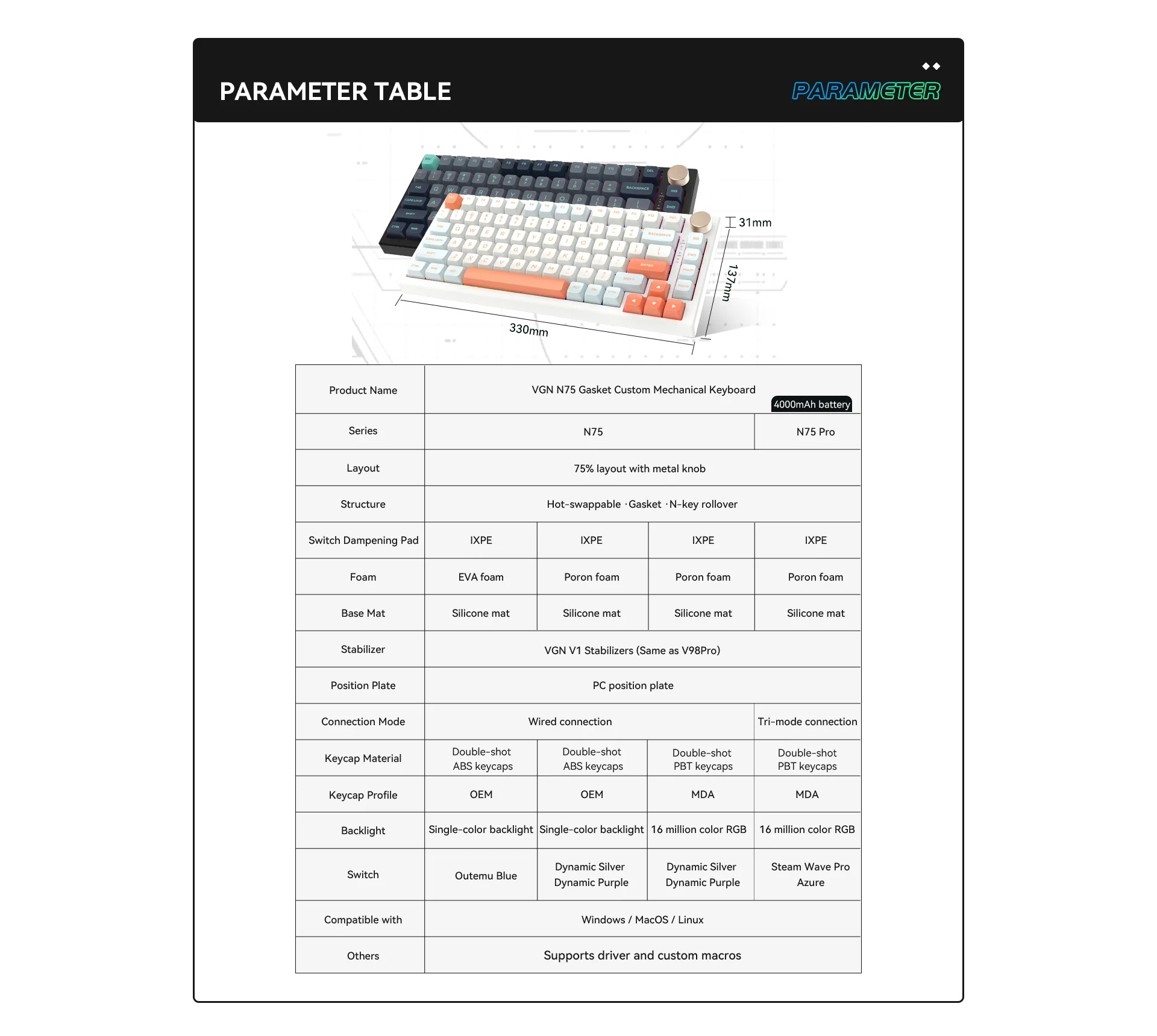 Tag : VGN N75 PRO TRI MODE HOT SWAPPABLE RGB MECHANICAL KEYBOARD CARRIBEAN BLUE JELLY ORANGE