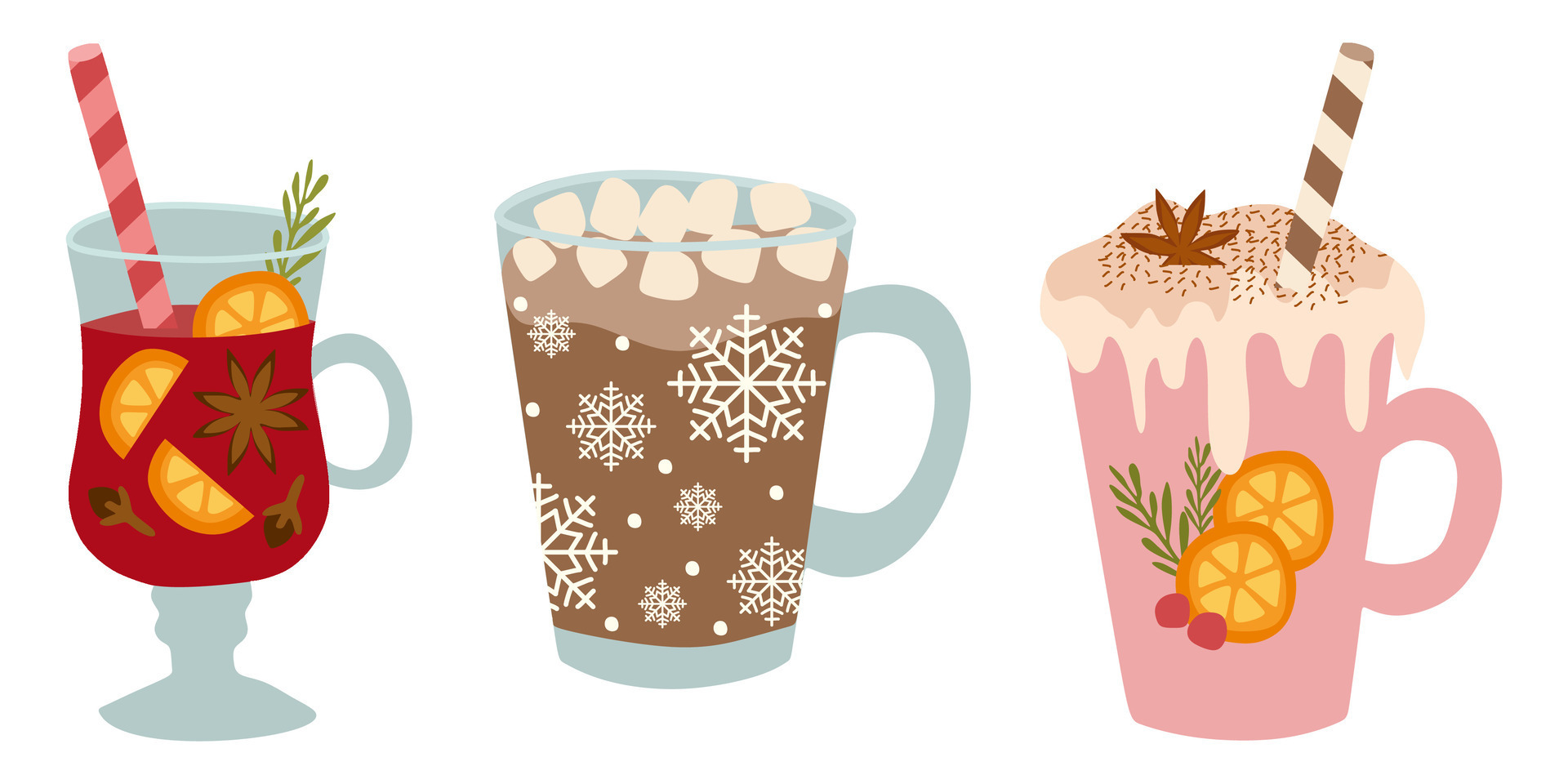 Tag : Vector Collection Of Hot Winter Drinks Hot Chocolate Coffee Cocoa With Whipped Cream And