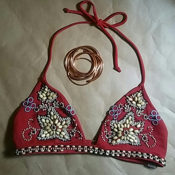 Victoria S Secret Swim Beaded Red Triangle Halter Bikini Top Sale Poshmark 140748