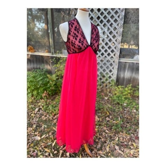 Vintage FRENCH MAID Nightgown Maxi Lingerie Red Black Gem