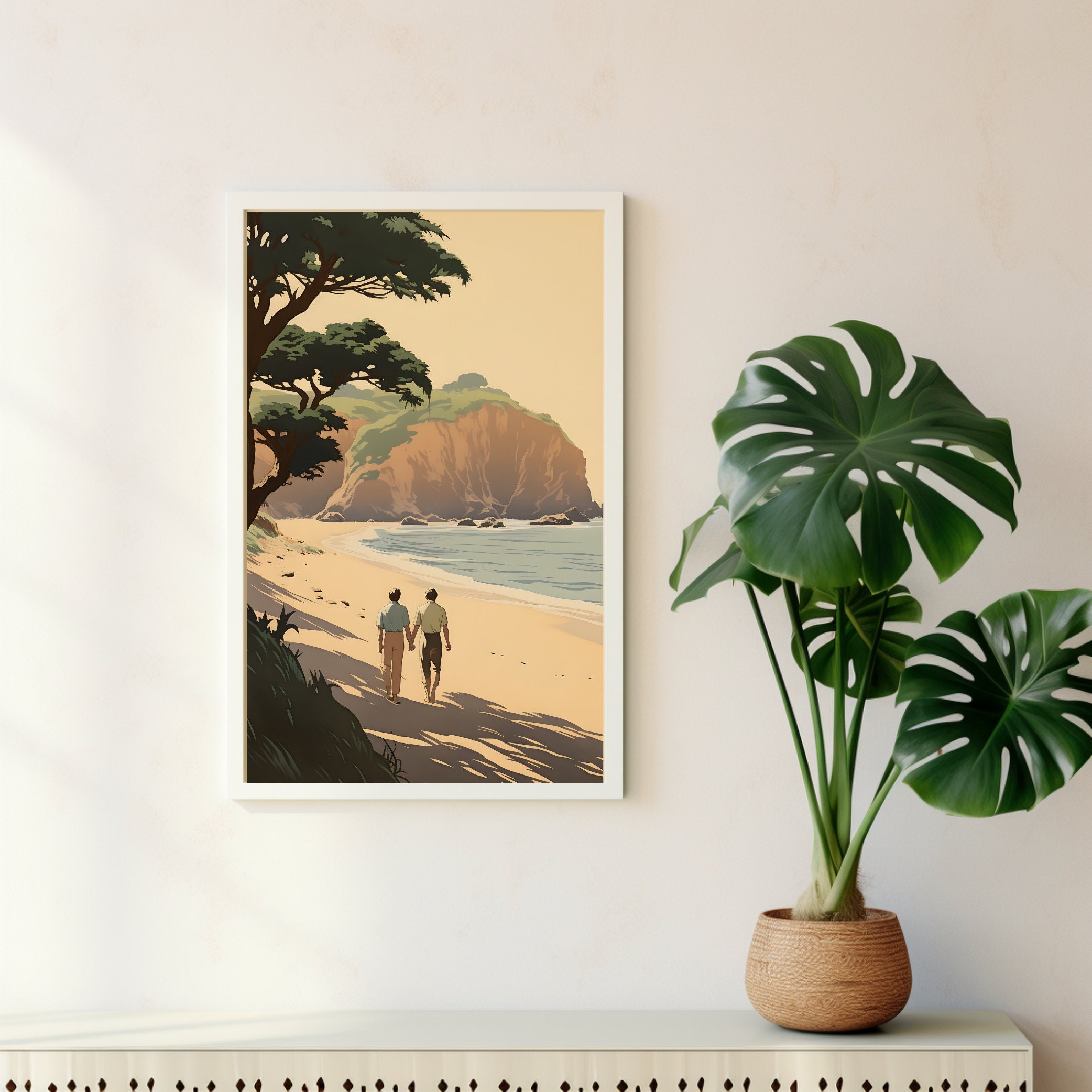 Vintage Gay Beach Couple LGBTQ Art Print Printable Wall Etsy Australia 167580