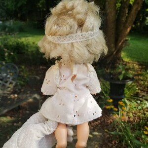Vintage Hard Plastic Vinyl Blonde Girl Doll Blue Sleep Eyes White Eyelet Dress Movable Joints is a popular picture for sexy and hot.