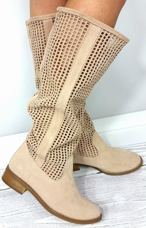 WIOSENNE KOZACZKI AŻUROWE NUDE RÓŻ SKÓRA ZAMSZ 36 7136003361 oficjalne archiwum Allegro 57330