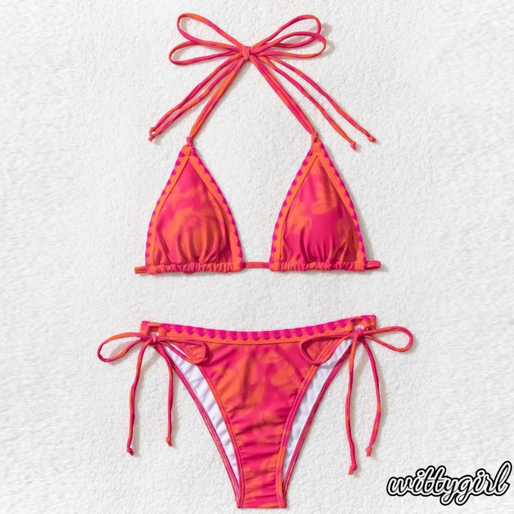 WITTY Women Pieces Bikini Swimsuits Print Tie Up Halter Neck Sleeveless Padded Bra Thong is a popular picture for sexy and hot.