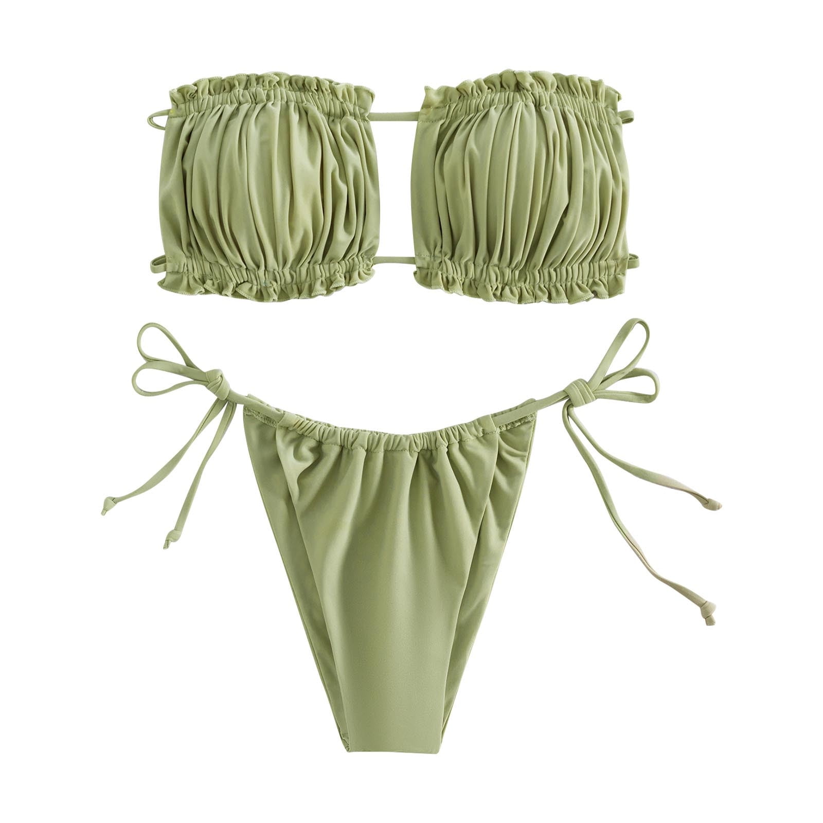 WREESH Womens Two Piece Swimsuit Bandeau Bikini Sets Fashion Straps Color Block Comfortable is a popular picture for sexy and hot.