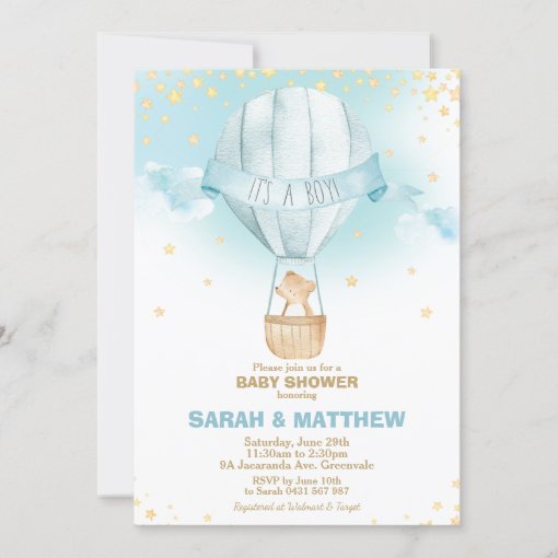 Tag : Whimsical Hot Air Balloon Baby Shower Bear Boy Invitation Zazzle