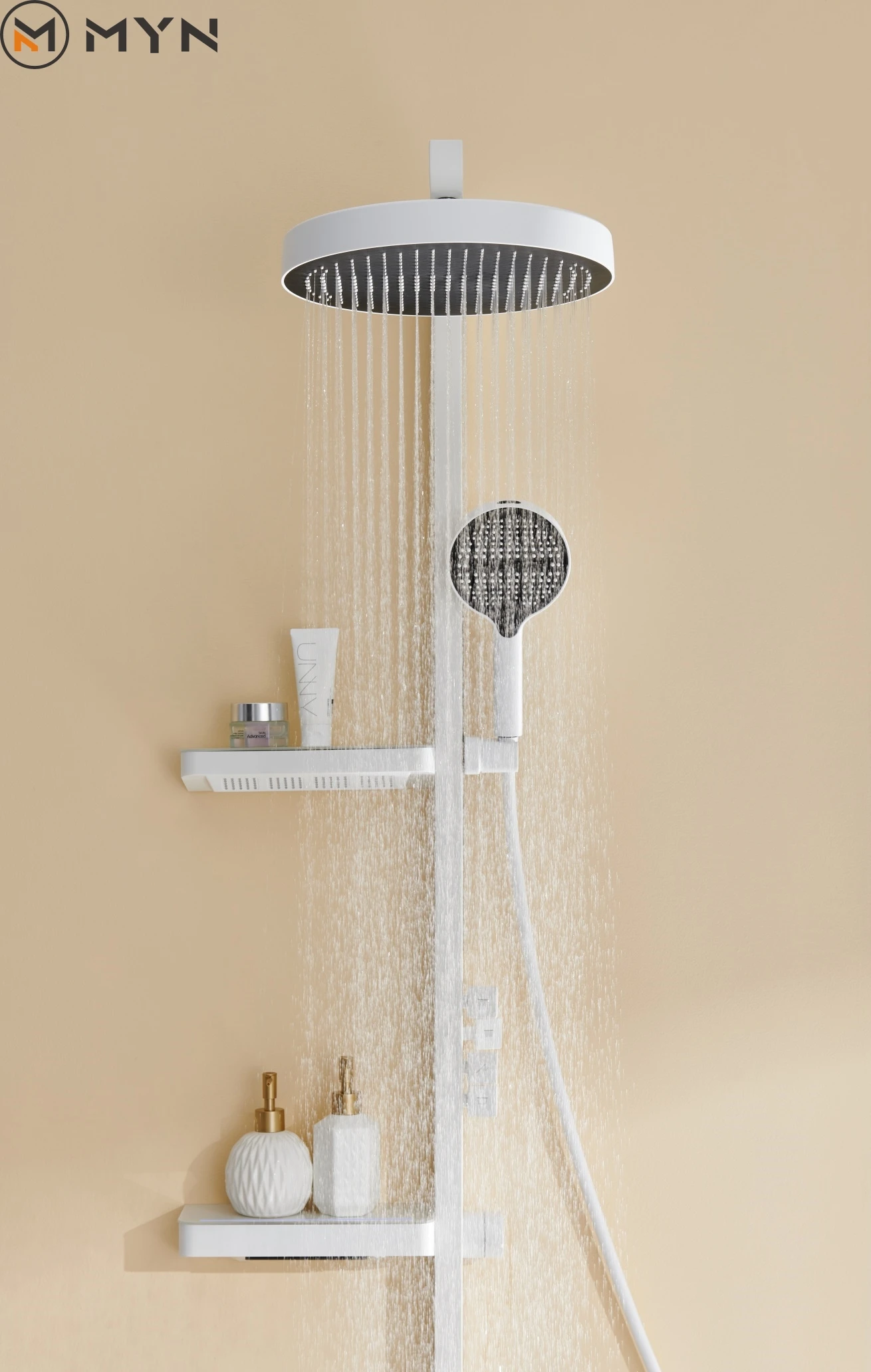 Tag : White Bathroom Hot And Cold Wall Hung Led Digital Display Waterfall Luxury Bath Faucets