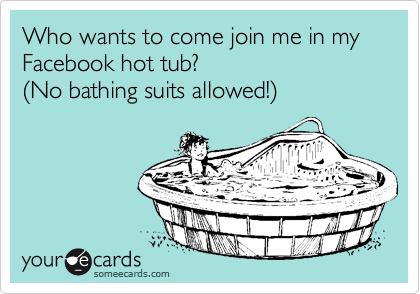 Who Wants To Come Join Me In My Facebook Hot Tub 28No Bathing Suits Allowed 29 Flirting Ecard is a popular picture for sexy and hot.