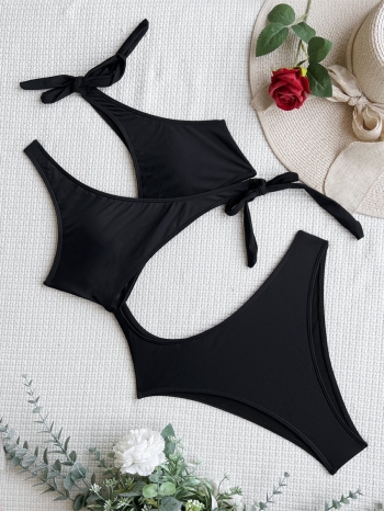 Wholesale New Pure Color Padded Hollow Out Lace Up Sexy Hot One Piece Swimsuit BA007133 is a popular picture for sexy and hot.