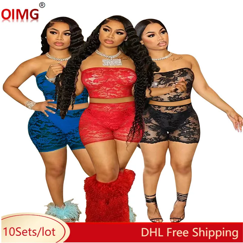 Tag : Wholesale Sexy Lace Two Piece Set Women Outfits Summer Strapless Boob Tube Top Shorts Hollow