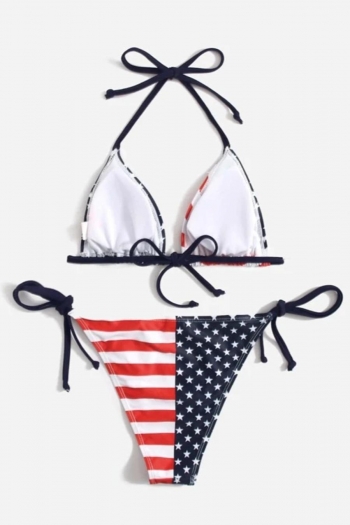 Wholesale Sexy American Flag Printing Padded Halter Neck Self Tie Triangle Bikini Sets BA is a popular picture for sexy and hot.