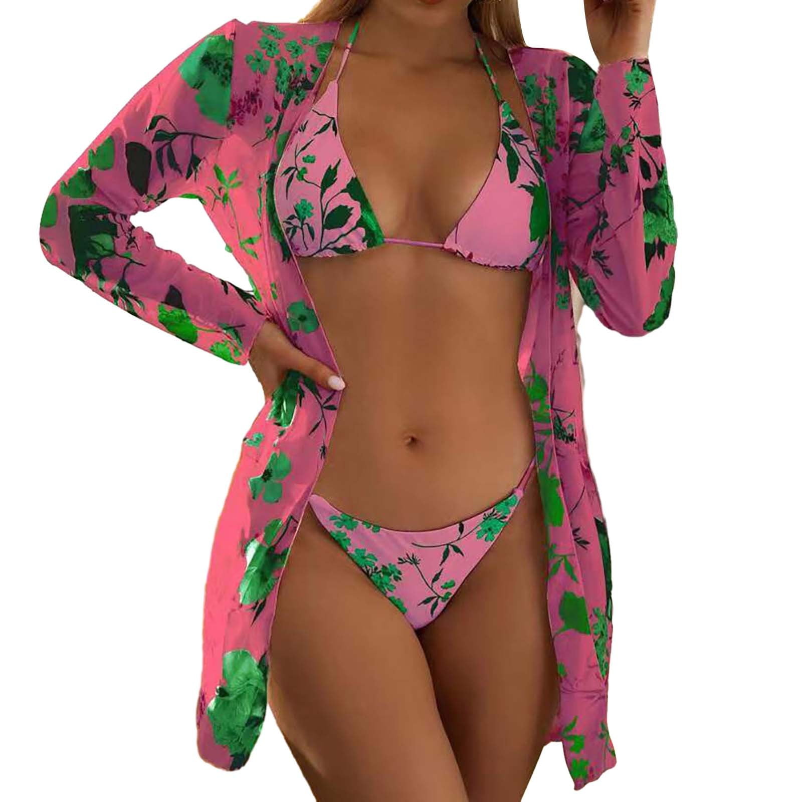 Wiueurtly Bikini Set With Cover Up For Women Floral Print High Stretch Piece Set Swimsuits is a popular picture for sexy and hot.