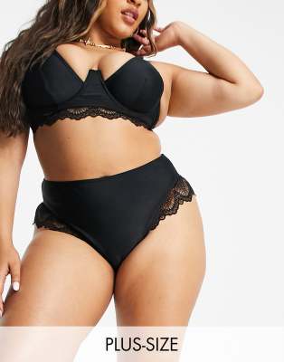 Tag : Wolf Whistle Curve Exclusive High Waist Bikini Bottom With Lace In Black ASOS