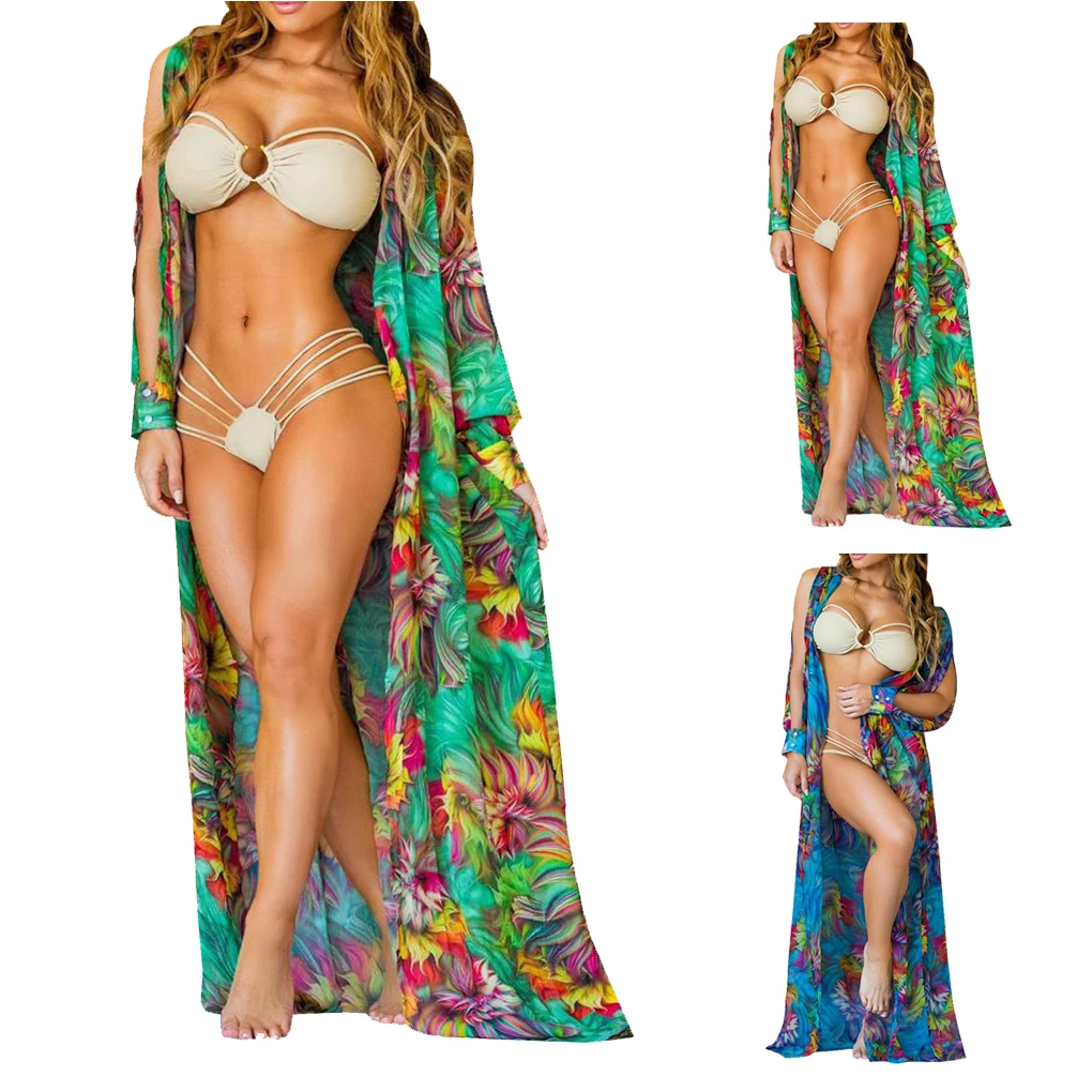 Women Printed Bikini Cover Up Floral Print Bohemia Sunscreen Cardigan Girl Loose Swimsuit pictures has 500 x 400 · 50 kB · jpeg.