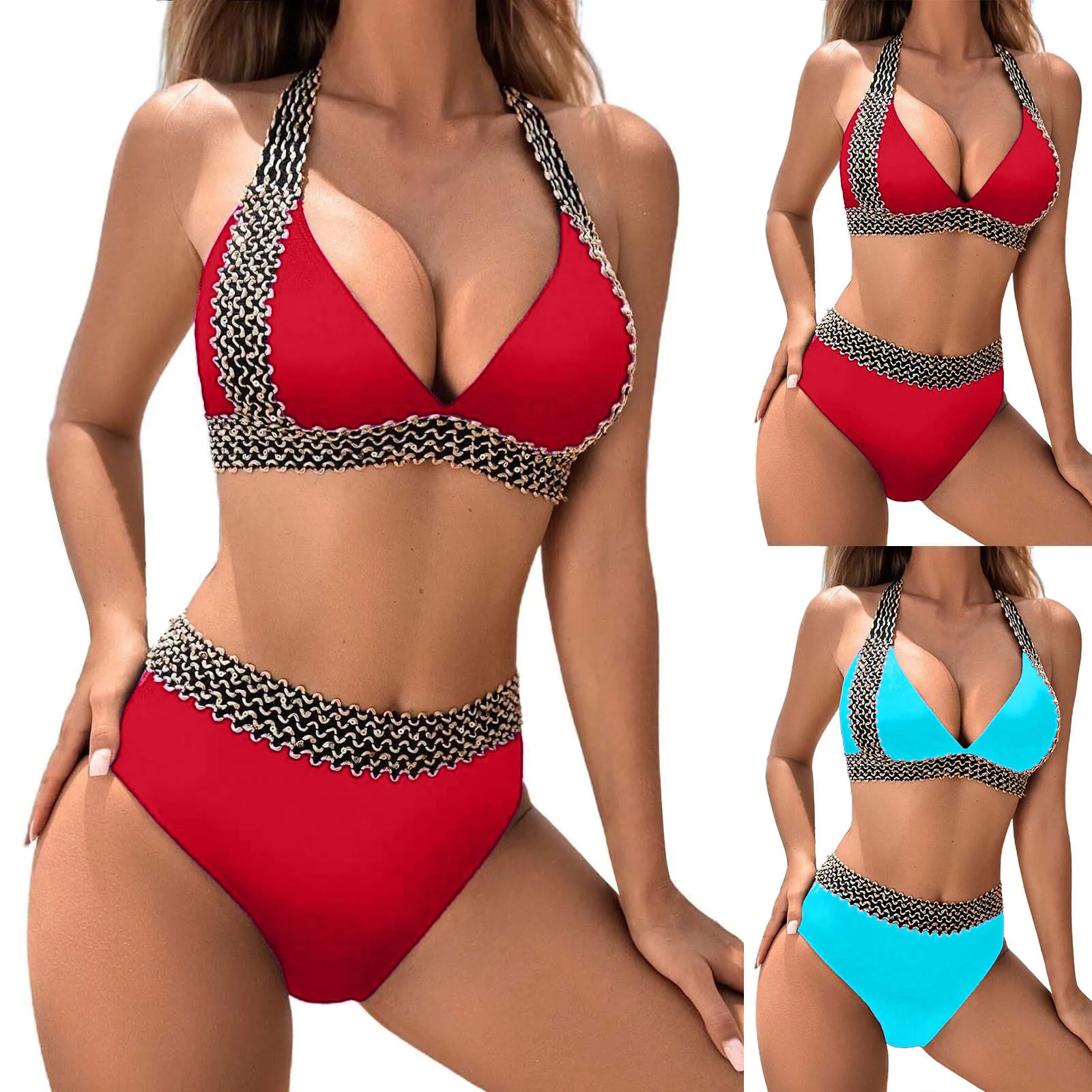 Women S Split Sexy Bikini Fashion Beach Solid Colour Seaside Swimwear Bikinis Women is a popular picture for sexy and hot.