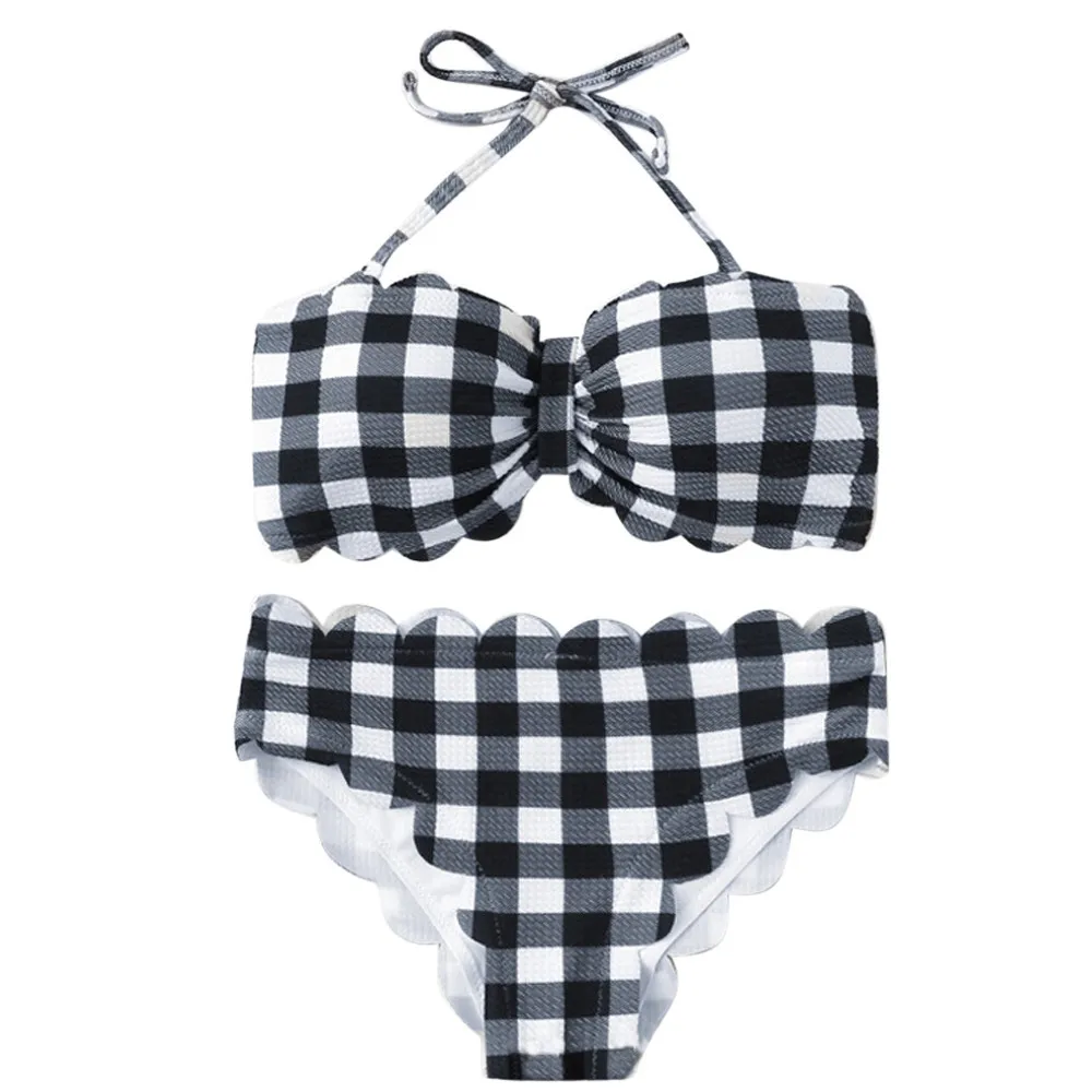 Tag : Women Sexy Backless Plaid Bikini Set Halter Bandage Push Up Padded Bra Underwire Swimwear