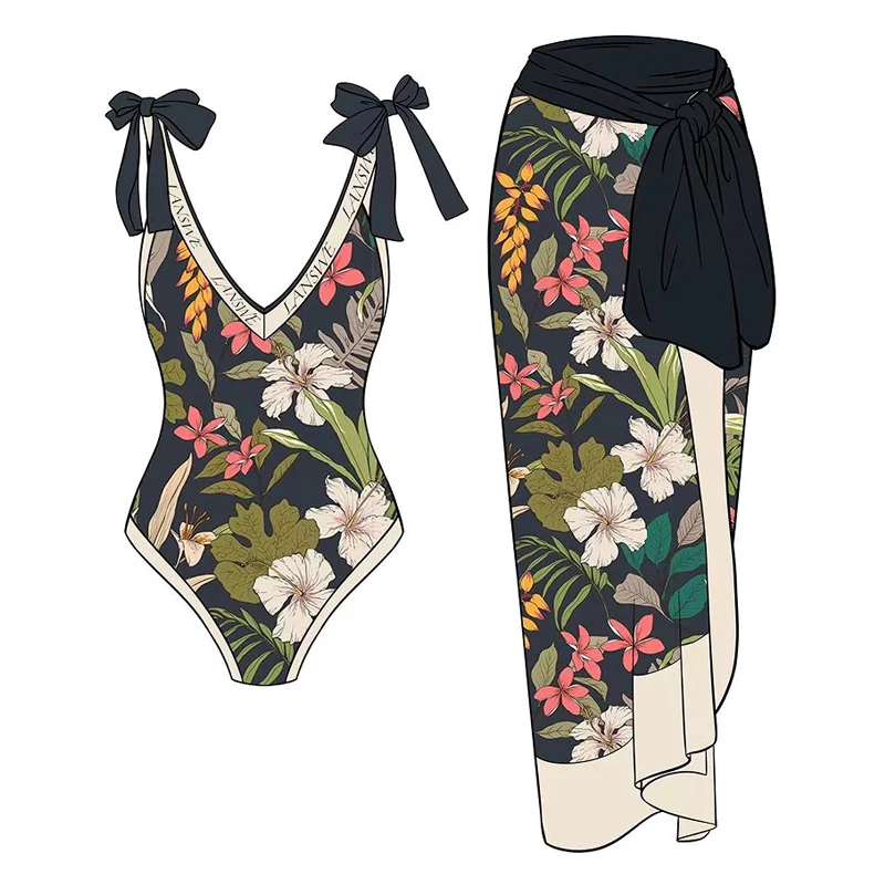 Tag : Women Swimsuits One Piece Swimwear Deep V Bikini Print Floral Bodysuit Cover Up Swimwear Bathing
