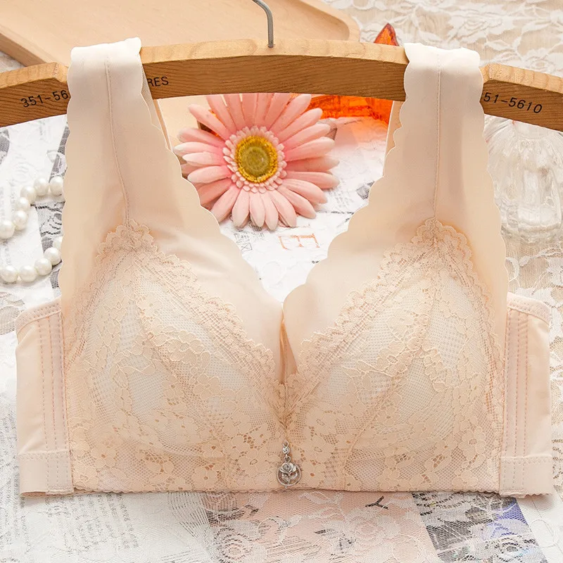 Women S Bra Gathered Sexy Lingerie Large Size Lace Vest Style New Comfortable U Back Underwear is a popular picture for sexy and hot.