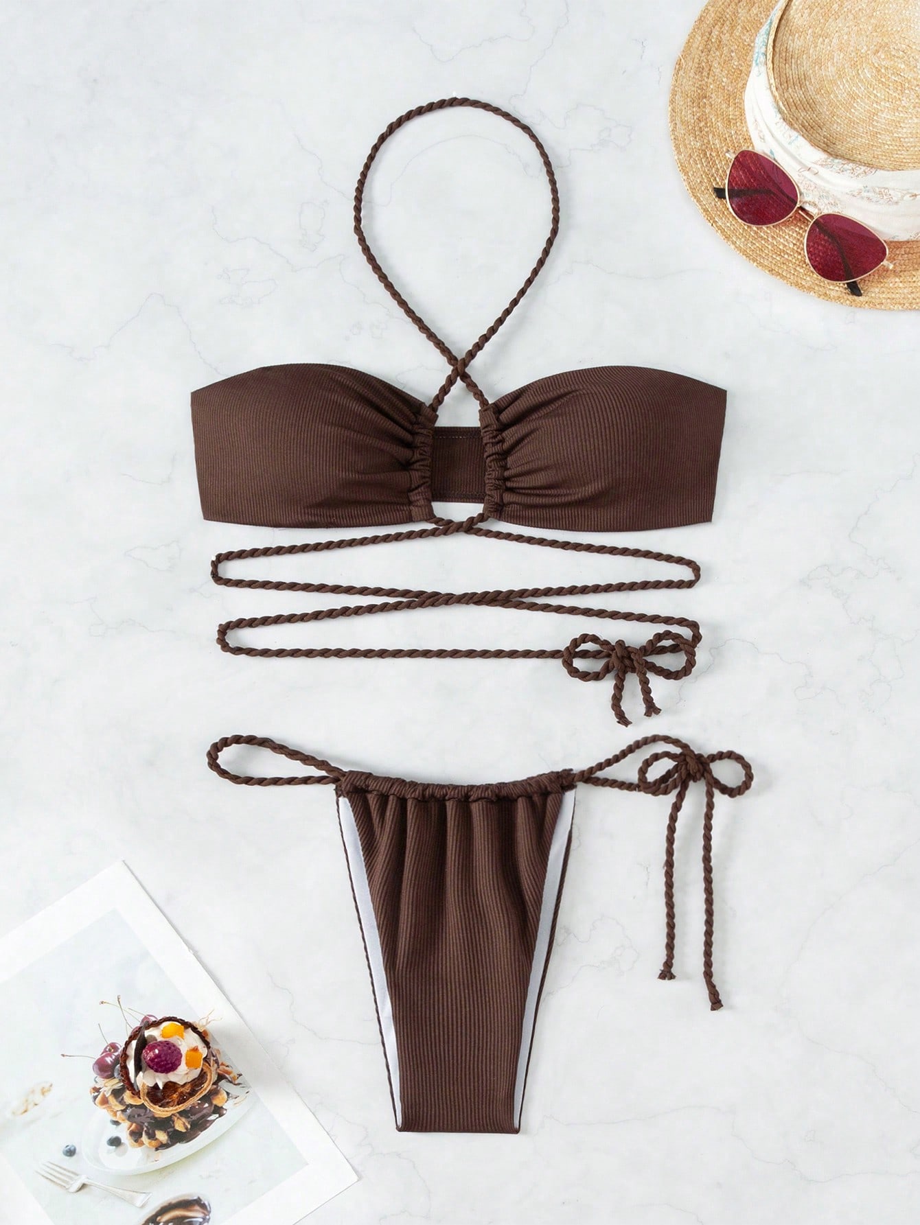 Women S Cross Neck Halter Strap Swimsuit Set Thong Two Piece Bikini Swimwear Bathing Suit Beach is a popular picture for sexy and hot.