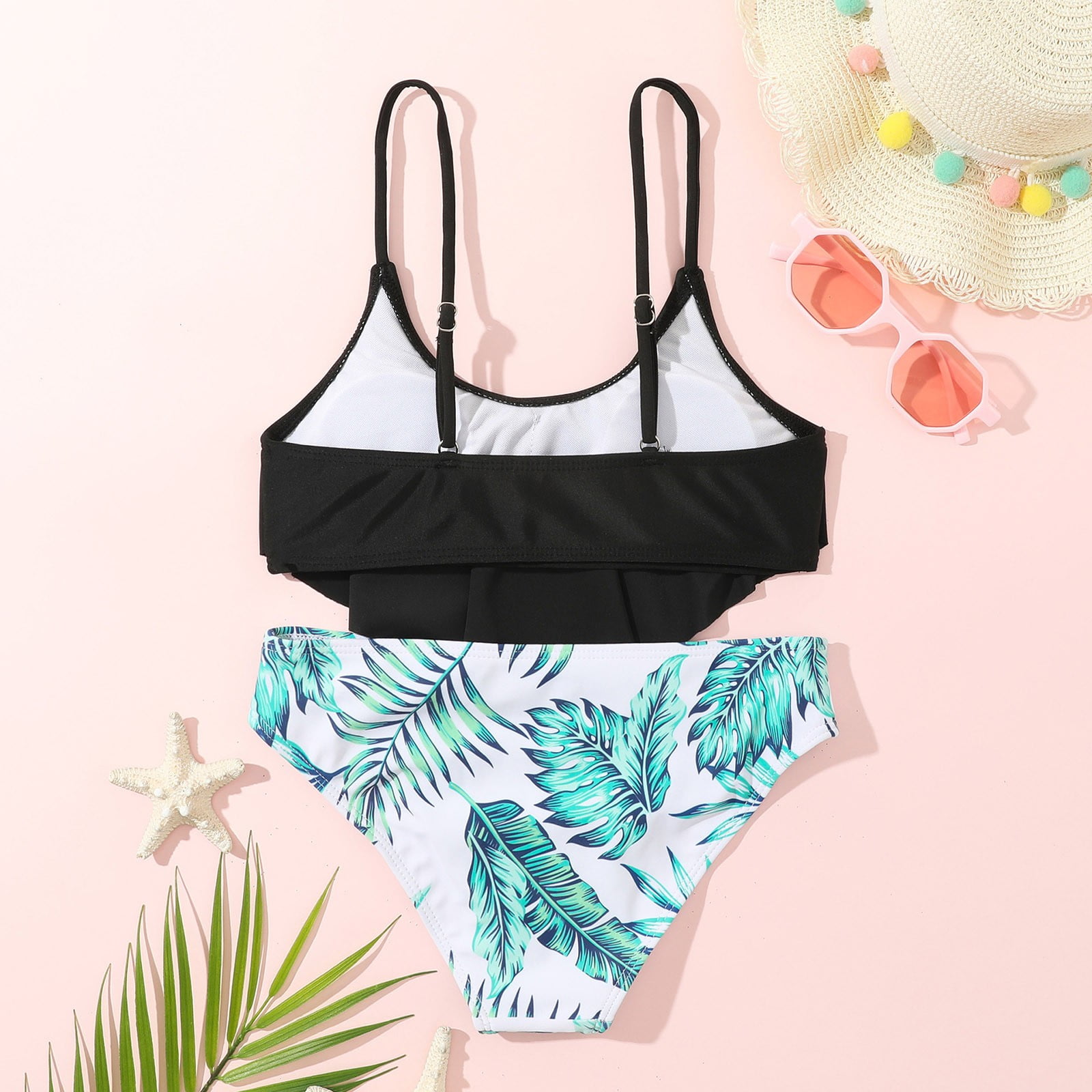 Tag : XIMIN Girl S Swimsuit Two Piece Leaf Print Shorts Bikini Set High Waisted Adjustable Straps
