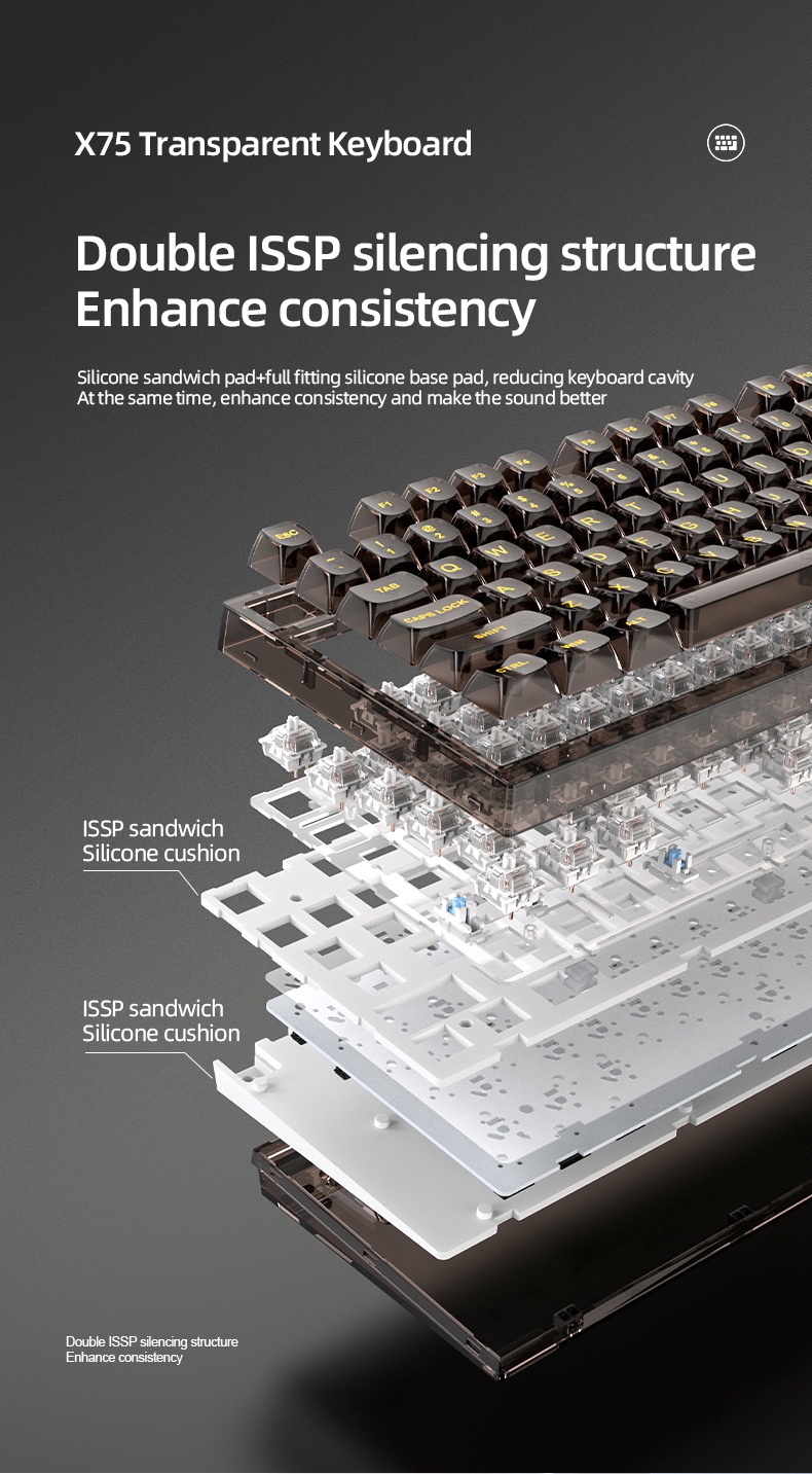 Xinmeng X75 75 Transparent Gasket Structure Hot Swappable Wired RGB Mechanical Keyboard 219240