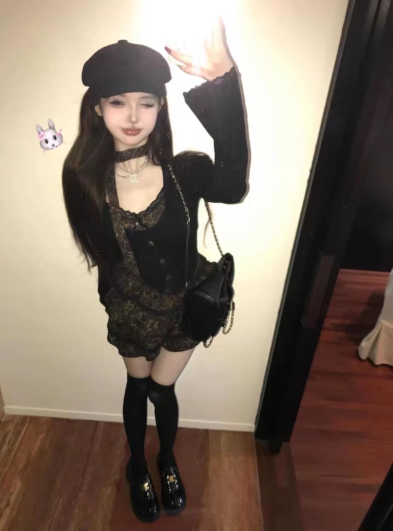 Xyzkuli Mỹ Retro Ren Khâu Dài Tay Áo Len Nữ Thu Đông Hot Girl Phù Hợp Với Da Báo In Bánh Váy Bộ is a popular picture for sexy and hot.