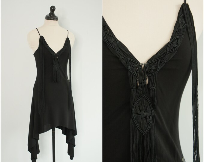 Tag : Y K LBD Black Lingerie Slip Dress With Long Fringe Size XS Extra Small Mini Length