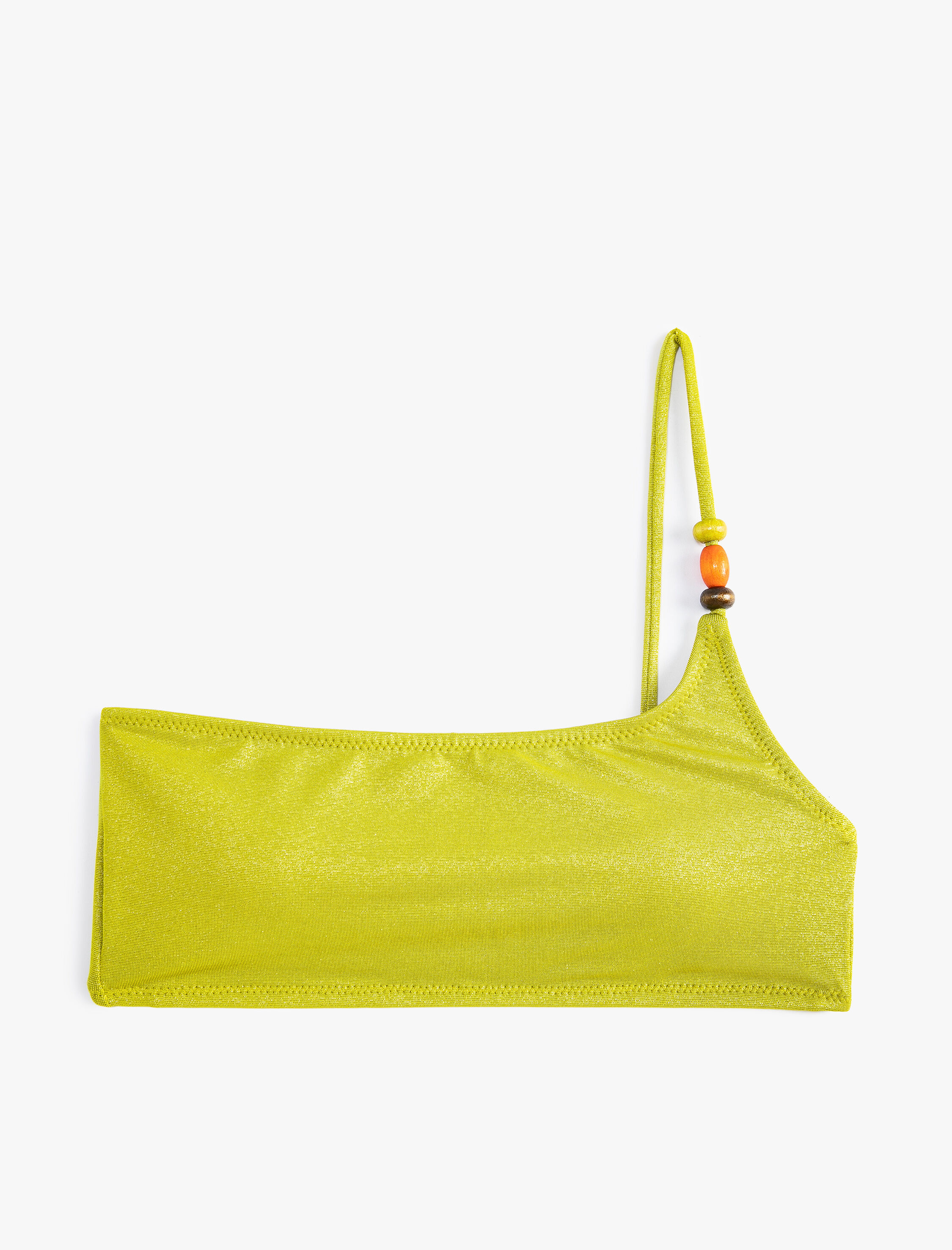 Yeşil Kadın Simli Bikini Üstü Tek Omuz Boncuk Detaylı Kaplı SAK MM Koton