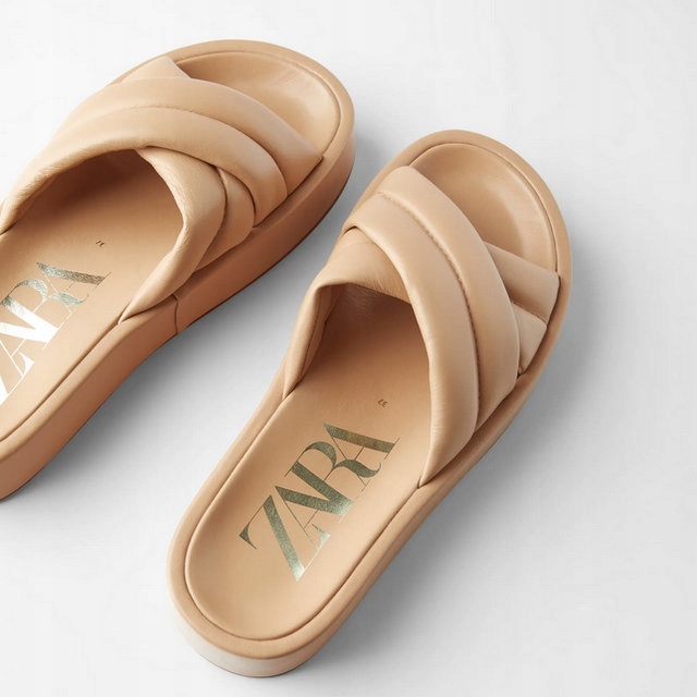 ZARA KLAPKI SANDAŁY SKÓRZANE NUDE PIKOWANE BEŻ oficjalne archiwum Allegro 47728
