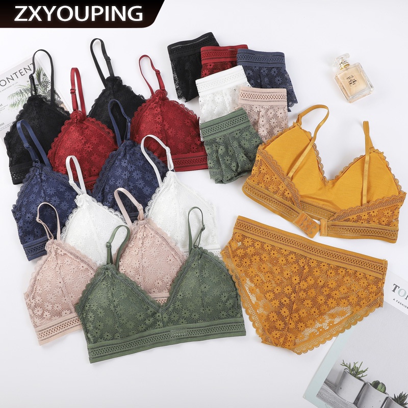 Tag : ZXYOUPING 2pcs Women Lingerie Set Bra Panties Underwear Set Floral Bralette Bra G String Thong