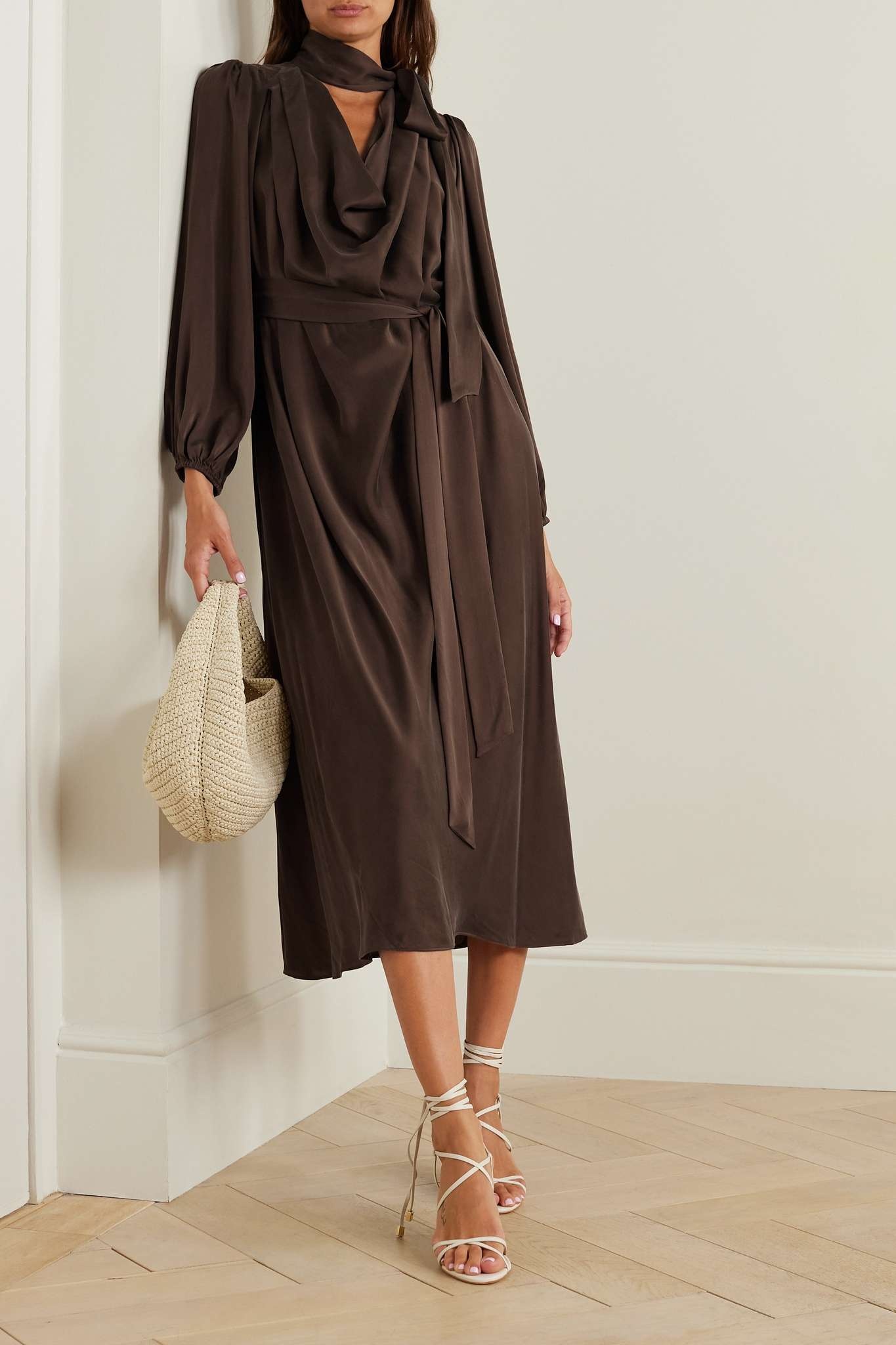 Zimmermann Billow Pussy Bow Belted Silk Satin Midi Dress REVERSIBLE is a popular picture for sexy and hot.