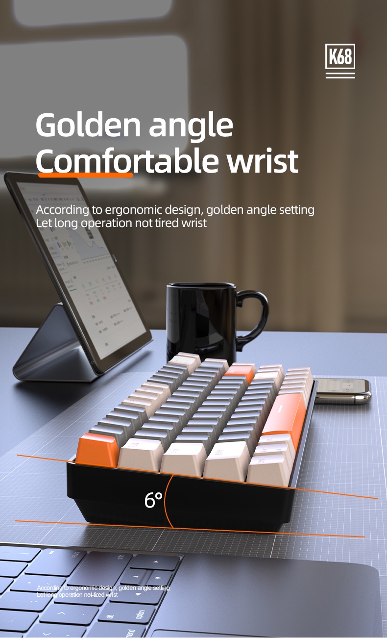 Ziyoulang K68 Wireless Bluetooth Mechanical Keyboard Hot Swappable 60 Keyboard For Office 196868