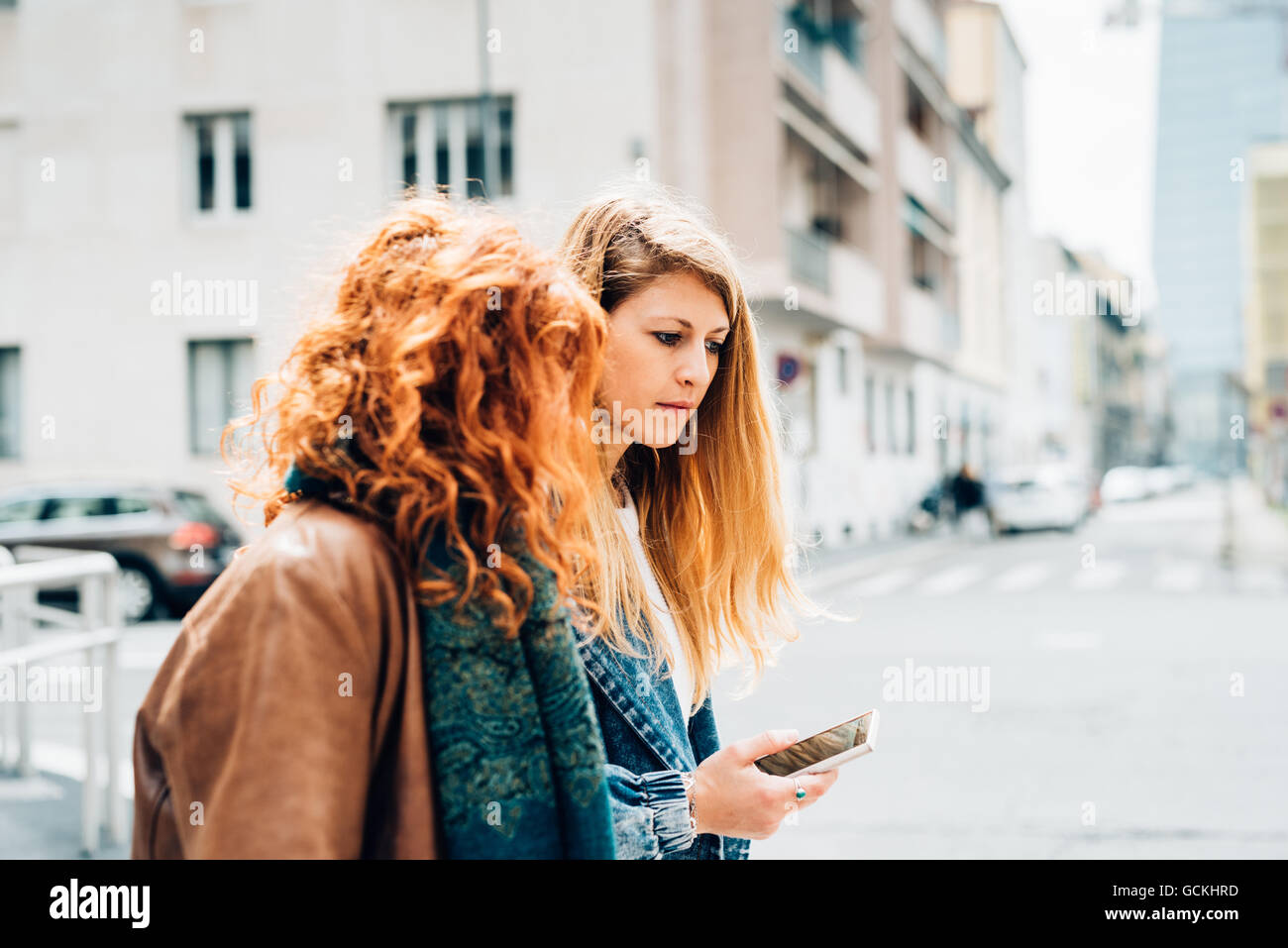 Zwei junge schöne kaukasischen Blonde und Rothaarige Frauen Freunde ein Spaziergang im Freien in pictures has 500 x 400 · 50 kB · jpeg.