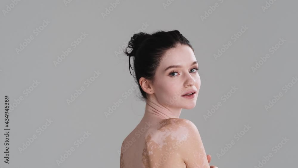 A Back View Of A Pretty Nice Half Naked Woman Is Posing Standing Isolated Over Gray Wall In The is a popular picture for sexy and hot.