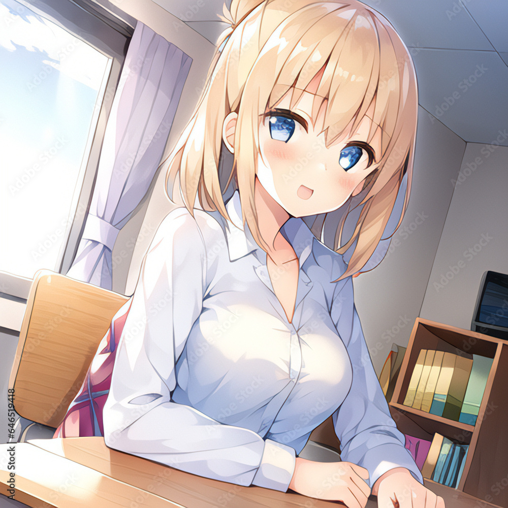 A Blonde Anime Girl Standing In A Room Indoors Sexy Anime Girl Digital Avatar Character is a popular picture for sexy and hot.